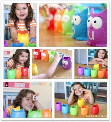 Learning Resources sent me this Vowel Owl set to try with my Kindergartener! This was a HUGE hit! The bright colors made the activity very appealing. She sat and sorted the vowel cards (long and short) into the cups. In fact, we did this activity several times! I love activities that are engaging and help reinforce basic skills. This activity also really helped in segmenting and sounding out each letter sound in the word.