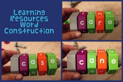 The Word Construction set from Learning Resources is geared for kids ages 5+ but my littler kids loved playing with these as well. Here's what we liked about this Word Construction set... The colors are vibrant and we liked how the vowels were all green The nuts & bolts design really was intriguing to my kids The storage tub was large and could fit all of the materials easily so the kids could clean up quickly! Once the nuts were on the bolts they were easy to turn so that kids could read several different words The materials were really durable and my 18 month old dumped them out again and again and everything stayed intact! The nuts and bolts were large, perfect for little hands to manipulate! Here's what we'd change about this set... We'd love all alphabet letters to be included. There were a few missing when we tried to spell some of our favorite words. We'd love the nuts & bolts pieces to be a little bit easier to manipulate. Even I had a hard time getting the pieces onto the bolts the first few times until I discovered the little grooves and taught the kids how they worked. Disclosure: I was given a free set from Learning Resources in exchange for an honest review.
