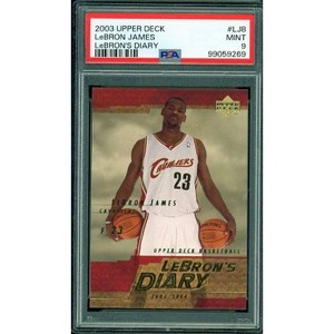 The LeBron James Rookie Card 2003-04 Upper Deck Diary #LJ8 PSA 9 is a highly sought-after collectible featuring one of the greatest basketball players of all time during his debut season. This particular card, graded PSA 9, signifies excellent condition, adding to its desirability among collectors and fans of LeBron James.