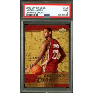 The LeBron James Rookie Card 2003-04 Upper Deck Diary #LJ9 PSA 9 is a highly sought-after collectible showcasing the early career of one of basketball's greatest players, LeBron James. Graded at PSA 9, this card is in mint condition, capturing a piece of NBA history from LeBron's first professional season.