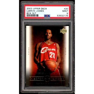 This card showcases the rookie card of NBA icon LeBron James from the 2003 Upper Deck LeBron James Box Set. It is graded as a PSA 9.