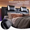 The Dominic LED Bed Frame combines a racing car-inspired headboard with floating bed elements and a wave-like curve design, creating a modern and luxurious aesthetic. It features vibrant RGB LED lights with over 6000 colors that sync with music and are controllable via app or remote, along with under-bed LEDs for a futuristic effect. The bed offers ergonomic comfort, is built for durability with noise-reducing features, and can be easily assembled in about 40 minutes with no box spring needed.