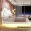 Luna LED full Bed Frame is a stylish and durable floating bed designed for girls, featuring a soft leather headboard shaped like a cloud and customizable LED lights for a cozy ambiance. Its innovative design includes removable rabbit ears and a sturdy metal frame supporting up to 800 lbs, making it both charming and practical. Easy to assemble in 40 minutes, this bed requires no box spring and transforms any bedroom into a dreamy, playful haven.