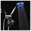 Powered by running water, no batteries, this DreamSpa LED combo shower system is the world's only color-changing LED shower combo. It's chrome face and Air Turbo Pressure Boost Technology give you maximum performance out your showerheads. Both showers feature Hydro Supercharged Turbine LED, Air Jet design that maximizes your water pressure output performance by injecting oxygen into water flow through 48 elastic rub-clean nozzles that help prevent clogging. The three color LED lights will change with the water temperature to enhance your shower experience even further. Color of LED lights changes automatically according to water temperature: BLUE - Cool under 95F (35C), GREEN - Warm 95-108F (35-42C), RED - Hot 109-122F (43-50C), FLASHING RED - Warning Hot over 122F (50C). Each showerhead has 4 settings including a water-saving setting. Limited 1-year Warranty and to install without tools.