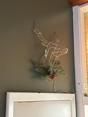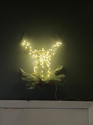 Brighten up your holiday decor with this LED Reindeer Head with Faux Greenery Christmas Novelty Silhouette Light from Wondershop™. This Christmas novelty light features a silhouette-style deer head set above a decorative arrangement of faux greenery, complete with a pinecone and red berries. Adorned with 100 LED warm white bulbs, it casts a charming glow and is suitable for both indoor and outdoor use. Plus, it comes with a hanging ring for simple and versatile display.
