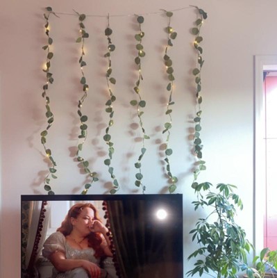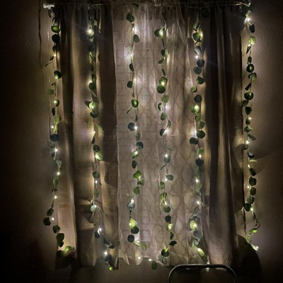 LED Eucalyptus Vine Curtain String Lights Warm White - West & Arrow: PVC Material, Battery Operated, Indoor Use