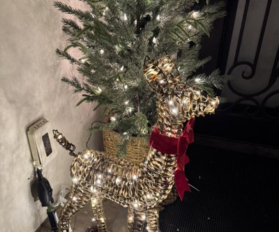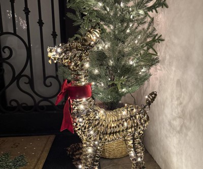 33" LED Faux Rattan Deer Doe with Red Bow Christmas Novelty Sculpture Light - Wondershop™