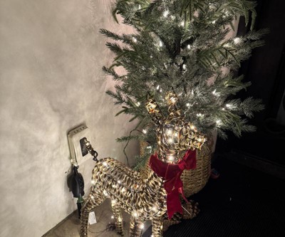 Very pretty, easy to assemble. Directions are clear and easy to follow. I like that it includes zip ties, however the quality of some of the zip ties is not great (i.e. they don’t work). There was no bow included in my box unfortunately. I also wish the male end plug was just a normal plug. The male end is a big bulky box and if you also buy the fawn and doe, you can’t plug all three into a 3 prong extension cord because they’re too bulky to plug in right next to each other. Why couldn’t they just make a normal sized male end?