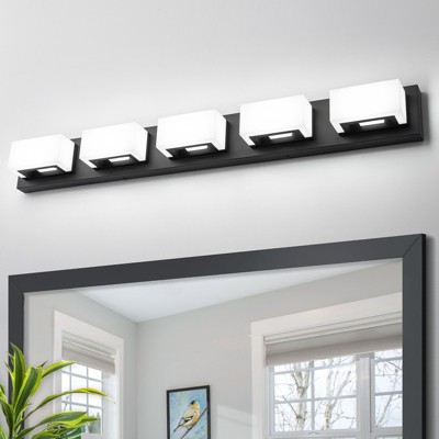 Add modern brightness with this 35-inch 5-light LED vanity light in chrome, ideal for medium to large bathroom mirrors.