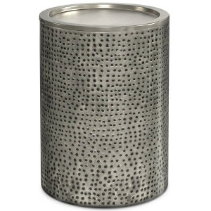 Transform your living space with the WyndenHall Karl Metal Side Table, a stunning blend of form and function. This handcrafted round drum table features a hammered texture and antique silver finish, adding an artisanal touch to modern and transitional interiors. Perfect for the living room, family room, or entryway, its compact 16" diameter and 21" height make it an ideal accent piece for small spaces. The durable iron metal construction ensures long-lasting quality, while the versatile design allows it to serve as a stylish surface for decorative accents, beverages, or lamps. With no assembly required, this unique silver accent table brings instant sophistication to your home without the hassle.