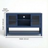 - Left and right hidden doors, middle shelf storage cabinets with embossed white patterns