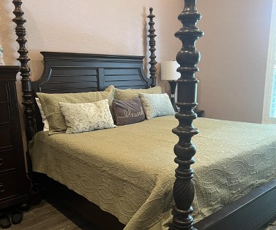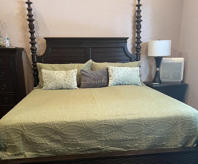 - 1 oversize Full bedspread 92" X 90" with 2 Shams each is 20" X 26" + 2"