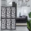 - Black Finish pine wood frame with translucent paper rice like insert for privacy on wooden Mosaic Cut pattern