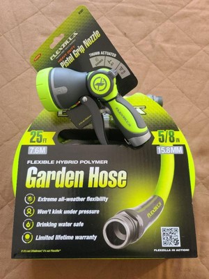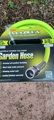 Flexzilla Garden Hose was engineered with a lightweight Flexible Hybrid Polymer to lie, at and eliminate kinking under pressure. It redenes exibility, making it easy to maneuver around trees, bushes or other obstacles. Zero memory means your sprinkler stays put without twisting. And Flexzilla Garden Hose doesn't, ght you when you coil it. Plus, with our superior O-ring, you get a long-term, leak-free connection at the spigot. The Flexible Hybrid Polymer inner tube material is drinking water safe.