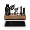 The Old Fashioned Bartender Kit is a compact, professional-grade cocktail tool set for the sustainably-minded mixologist. With a case made of sustainable mango wood sourced from India, this travel bartending set features a 10-piece array of black stainless steel tools including shaker, strainer, skimmer, stir spoon, bottle opener, muddler, tongs, jigger, pour spouts, and bar mat. Even on the go, you can keep your most important cocktail tools organized and easily accessible with this attractive and convenient set.