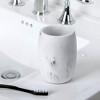 - Hotel inspired marble look tumbler in white with grey/black vein detailing, brings refreshing style to your spa-like bathroom