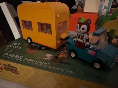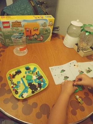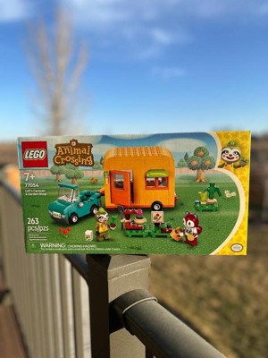 [This review was collected as part of a promotion.] 263 pieces: Mini figurines are: Leif the sloth and Poppy the squirrel Includes a yellow caravan, turquoise jeep, little garden sets, a barbecue grill and plants. It is a cute addition to LEGO lovers. I would have to say that Leif the sloth and Poppy the squirrel are adorable. It is a cute addition to the Animal Crossing sets! It states ages 7+ but if you have toddlers in the house it would need to be kept up away from tiny fingers due to so many micro mini pieces. As with all LEGOS it is very durable.