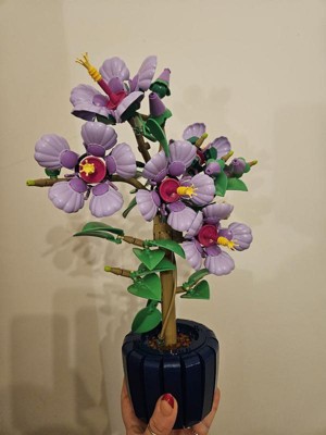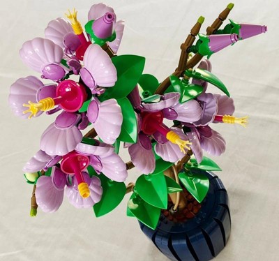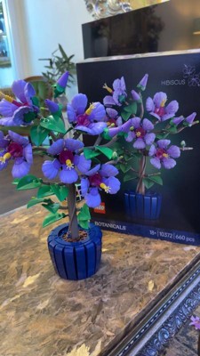 - BUILD TROPICAL BLOOMS – Create stunning artificial flowers with this detailed hibiscus building set featuring 5 large purple flowers, 4 opening buds, and 2 young flower nodes