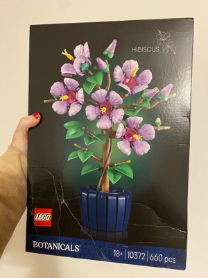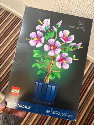 Bring lasting beauty indoors with the LEGO Botanicals Hibiscus (10372), a challenging building set for adults 18 years old and up that celebrates the elegance of tropical blooms. This detailed artificial flowers display captures the hibiscus plant in full glory, featuring five large lavender blooms, four buds ready to blossom, and two young flower buds showcasing the plant's natural growth cycle. The realistic purple flowers feature delicate petals and bright yellow stamens that bring authentic botanical charm to any space. Once built, you can customize your creation by adjusting the petals and positioning the pale green leaves for a personalized touch. The buildable dark blue pot provides an elegant presentation, allowing you to proudly display the build in your home office, bedroom, or bookshelf. Unlike real hibiscus flowers, this LEGO version requires no watering or maintenance while delivering the same visual impact as artificial plants. Makes a thoughtful gift for plant enthusiasts, flower lovers, or anyone who appreciates detailed craft projects that result in beautiful home decor. Contains 660 pieces.