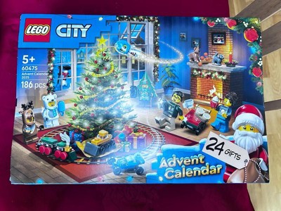 Start the holiday countdown with the LEGO City Advent Calendar 2025 (60475), a buildable kids toy for boys and girls 5 years old and up. This year's calendar is bursting with holiday fun and features 24 special surprises just waiting to be discovered. Each day, kids can reveal fun LEGO gifts, including Santa and Mrs. Claus minifigures, characters dressed in polar bear, reindeer and holiday tree costumes, plus accessories and mini builds that spark creative pretend play. Each surprise comes with simple building instructions printed right inside the calendar window, making it perfect for new builders and little LEGO fans. Young builders can fold out a playmat attached to their calendar to reveal a Christmas party scene that forms the perfect backdrop for dreaming up seasonal stories using the toys kids uncover each day. This advent calendar makes a wonderful Christmas or holiday gift for kids who love building challenges, creative storytelling, and the bustling world of LEGO City. For year-round fun, this set can be combined with other buildable toys, accessories and minifigures in the LEGO City series (sold separately). Contains 186 pieces.