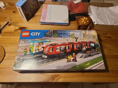 - What’s in the box? – This LEGO City toy includes everything kids need to build a toy streetcar and a station with a passenger platform and coffee shop, plus 6 minifigures and a guide dog figure