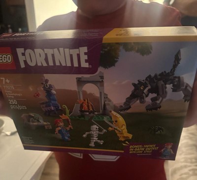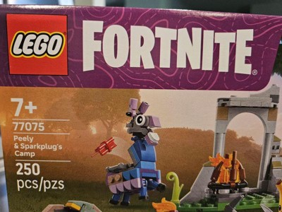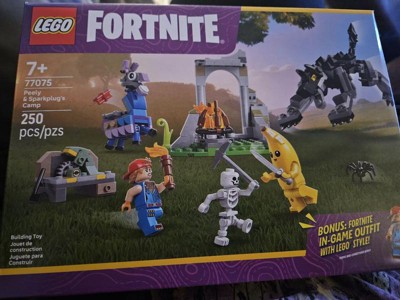Drop into adventure! The LEGO Fortnite Peely & Sparkplug's Camp (77075) brings the wildly popular battle royale game to life for young gamers. Kids 7 and up can construct a detailed campsite from LEGO Fortnite Odyssey journey—including a campfire, workbench, and ruins that can be rearranged for endless creative play. The set includes beloved Fortnite characters Peely and Sparkplug and a skeleton—plus a Supply Llama figure and wolf with movable legs and tail. Young builders will love equipping their minifigures with their included accessories and embarking on fun-filled pretend adventures. As an added bonus, the set includes a code to unlock an exclusive Sparkplug Outfit in the LEGO Fortnite video game. Perfect as a birthday gift for young boys and girls who love Fortnite and hands-on creative play. Contains 250 pieces.