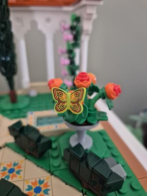 The photos on the box do not do this garden justice. It is such a beautiful, harmonious, and well thought out set. The fountain is adorable, the French marigolds are standout and the printed tiles look stunning. My favorite part was in the building of the four removable sections where you can imagine the layers of clay, rock, roots, and humus. I took the liberty of moving some of the fixed plants and adding a minifig.