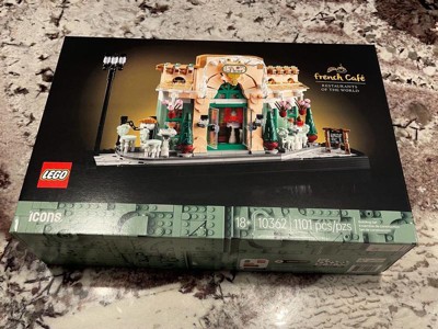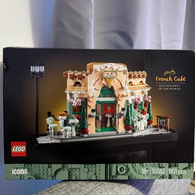 Transform your space with the LEGO Icons French Café (10362) building kit for adults. A brick-built sidewalk with a classic streetlight sets the stage for Café Fleur, a classic French bistro with a picturesque facade, ornate seating and hanging flowerpots. Double doors open to reveal a glimpse of a cozy interior with regal wallpaper and dark-wood furnishings. Every corner of this collectible building kit showcases intricate details and accessories, including croissants, cups, a newspaper and cash register. Designed for adult fans of LEGO building, food and travel, the buildable set invites you to unwind as you create your own piece of French charm. For an immersive building experience, This collectible home and office decor set's slim profile and flat back make it perfect for shelf display. For an immersive building experience, download the LEGO Builder app, which features a 3D version of the building instructions. Discover the entire range of LEGO creative building sets for adults, each sold separately. Contains 1,101 pieces.
