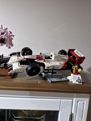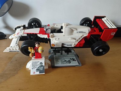 - Gift idea for the home office – Includes a McLaren MP4/4 display stand with printed vehicle statistics and an Ayrton Senna minifigure display podium with a photo and iconic Senna quote for home office décor
