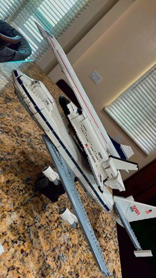 Build two icons of the skies with the LEGO Icons Shuttle Carrier Aircraft (10360) building blocks set for adults 18 years old and up. Featuring the legendary Boeing 747 and NASA Space Shuttle Enterprise, this detailed building set lets you recreate two remarkable aircraft that revolutionized aviation and space travel. The 747 aircraft includes deployable 18-wheel landing gear, while the Space Shuttle Enterprise features detachable engines and landing gear that can be stowed in its cargo bay. Once your build is complete, display your plane and spaceship on the included stand alongside an information plaque for each model. his striking piece of home or office decor makes an ideal gift for adults who appreciate immersive building challenges and 3D puzzles, space travel, and aviation history. Explore the entire range of LEGO Icons building sets for adults (each sold separately), and enhance your building experience with the LEGO Builder app's intuitive digital instructions. Contains 2,417 pieces.