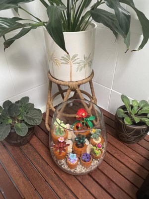 A: The Tiny Plants set has everything needed to build 9 plants, each nestled in a buildable, terracotta-colored container. - Jane, LEGO® Customer Service