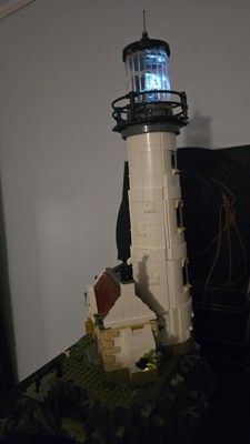 - The LEGO Ideas Motorized Lighthouse set for adults features a lighthouse with working lights, keeper's cottage on a cliff, a pier and a cave