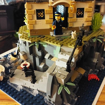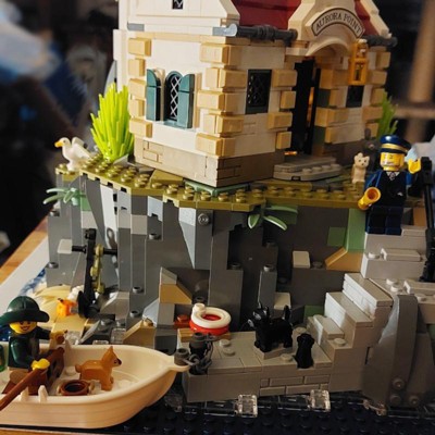 - Also includes 2 minifigures, a rowboat, a lighthouse painting, a treasure chest, plus a cat and a seagull to make the scene more realistic