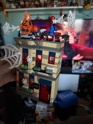 - LEGO MARVEL SPIDER-MAN ACCESSORIES – The 2-level apartment contains a kitchen, study and bedroom and features a giant, flexible, minifigure-trapping web attached to the outside of the building