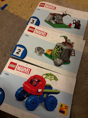 [This review was collected as part of a promotion.] This Spiderman Lego set is really fun. It says ages 4+, but my 4 year old couldn't really figure out how to assemble it without help (as in I did most of the work). I had all 3 done in 10-15 minutes. My 4 year old really likes playing with Spidey and Spin and the dinosaurs. There are some very small loose pieces (dino bones, gems, etc) so be careful if you have any toddlers or babies around.