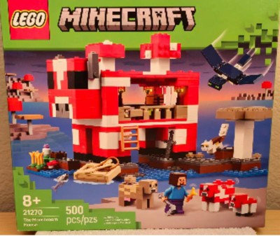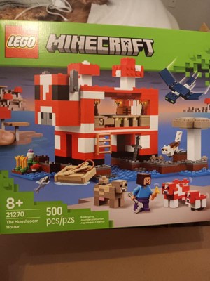 LEGO Minecraft The Mooshroom House (21270) building toy is perfect for kids and video game fans ages 8 and up who love crafting homes, tending to animals and fending off the occasional air attack! This engaging playset is an excellent Minecraft toy for girls and boys. Set in the mushroom island, this LEGO Minecraft toy building set includes 6 figures: the popular character Steve as well as a red mooshroom, baby red mooshroom, brown mooshroom, calico cat and the hostile flying phantom. Kids can enjoy hours of pretend play, creating an immersive experience with the elements packed in this set. Accessories include a small farm area with wheat, mushrooms and a pitcher plant growing alongside a composter, a fishing rod, cod, hoe, netherite sword, bowl, boat with oars, chest, furnace, crafting table, bookshelf, bread and a bed. The LEGO Builder app gives kids the added fun of using their device to zoom in and rotate models in 3D. Contains 500 pieces.