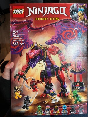 - DIMENSIONS – The Thunderfang Dragon of Chaos figure in this 668-piece LEGO NINJAGO building kit stands over 9.5 in. (24 cm) tall