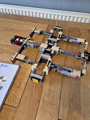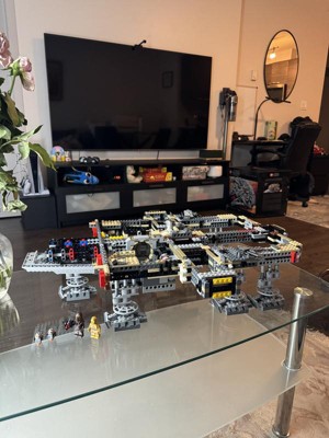- Exterior features include intricately detailed and removable hull panels, a lowering boarding ramp, concealed blaster cannon, 4-minifigure cockpit with detachable canopy, interchangeable round/rectangular sensor dishes, upper and lower quad laser cannons, and 7 landing legs