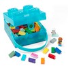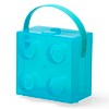 LEGO BOX W/ HANDLE - TRANSLUCENT LIGHT BLUE: Make cleanup and storage fun! This square box in the classic LEGO brick design features a soft silicone handle for handy transportation and easy grip. Multiuse box - It can be used as a lunch box, storage box or carry case. The lid of the boxis easily opened and locked with the small clip and isattached to the bottom. It makes it suitable even for small LEGO fans who want to carry on the LEGO adventure on picnics, in school or wherever they go. Measures 6.8 x 6.5 x 4.6" making it generously sized yet easily portable. Easily fits into your bag or backpack - perfect for on the go.