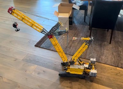 First of all, this is a MONSTER. I didn't think it would be this big. Building was straightforward and the instructions were easy to follow. It's probably the best designed and sturdiest Lego build I've done. The hardest part for me was running the string for the pully system that moves the arms. The string that raises and lowers the hook is over 20 feet long. I made one mistake on one of the crawler track assemblies and instead of all yellow on the side, I have black section, but I'm not going to take it apart and try to fix it. (I tried to upload photos, but it wouldn't let me)