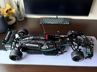 As an F1 fan, and a Lewis Hamilton fan, and a black-Mercedes fan - this set was a must! It predates the official Lego partnership with F1 but it still compares favourably with the Red Bull and Ferrari cars that came out of that partnership. It also compares very favorably against the McLaren Technic F1 car, in that this model is based off of the actual W14E, it has a removable engine cover, and it utilizes the stronger red springs (my McLaren's floor is resting directly on the shelf at this point). Only comment I'll make is that it was difficult to line up some of the built parts during the build, due to there being multiple pins that needed to be engaged simultaneously. Also the connection point for some of these built parts is not always easy to discern from the printed instructions. The digital instructions might make this easier - BUT - I welcomed the challenge and I'm sure you can figure it all out if you just pay close attention and try to make sense of what you're doing. Overall very happy with this set. The McLaren is now at the office and the Merc is on display at home.