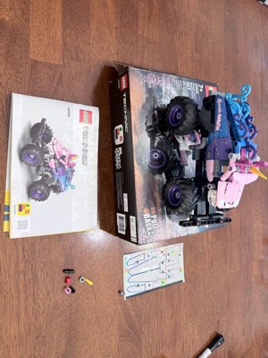 [This review was collected as part of a promotion.] It’s a such a fun colorful set! I love the bright pink and teal design it really stands out. The build is easy and quick but still super satisfying. The big tires and pull back feature make it perfect for racing and doing cool stunts. It’s great for kids and even adults who love monster jam trucks