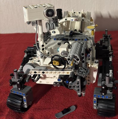 The set brought a lot of positive emotions: it’s larger than it looks; it looks great on a shelf; the suspension design is brilliant and stays true to the original; the wheels look like they were taken straight off a real rover; the build is interesting and the functions are engaging… But when it comes to the functions, it turns out they are mostly demonstrative. Perseverance can’t overcome obstacles on its own without assistance, it has noticeable play in the mechanisms, and its handling strongly depends on the surface it moves on. Its robotic arm wobbles heavily due to its weight and also has a lot of slack. - On top of that, Lego continues to refuse to produce Technic connector parts in different colors, which hurts the appearance of any set. I understand that this can be explained by the high requirements for simplified building aimed at the 10+ category, but the same situation is observed in sets aimed at 18+ as well. Set 42158 turned out to be ambiguous: it feels as if the designers wanted to make a fully functional working replica of Perseverance, but once they found out the set would be rated 10+, they still tried to cram in as many parts as possible, neglecting the functions or their actual performance. As an adult, I’m very happy with this approach, but as a child I wouldn’t be sure that I’d enjoy the functions of this set. However, the virtual reality feature adds some advantages—though it’s a pity that you interact with it not through the rover itself, but only via a phone. Stickers can also be explained by the low entry threshold and the requirement to allow rebuilding the model into something else, but this issue is also present in “display-only” 18+ sets, so it’s not really an excuse. In the photos, I tried to fix the issue with inappropriate part colors wherever I could, and also added a couple of tweaks, like other fans did, while trying to stick to Lego’s standards in terms of structural strength. I really liked the set for its price, but I can’t ignore the obvious issues—it has plenty of shortcomings.