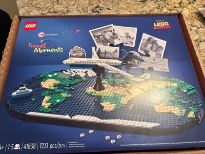 - Travel memories set for group fun – Inspire family building activities or plan your next adventure with this Travel Moments building set, which comes with a world map and buildable jet