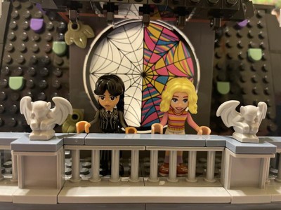 - NEVERMORE ACADEMY SET – The school playset includes a buildable dorm room with a spiderweb window that opens, a base with buttons that open secret drawers and a balcony with 4 gargoyles