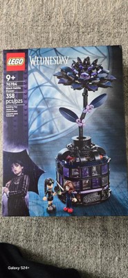 Something creepy is crawling this way! Young Wednesday fans ages 9 years old and up can construct their own piece of Nevermore Academy with the LEGO Wednesday Black Dahlia Flower (76784) building toy for kids. This spellbinding building toy captures the gothic elegance of the hit series as kids craft a black dahlia conservatory that's hiding supernatural secrets. Young builders create an intricate flower display featuring dark dahlia blooms with leaves and purple buds, all nestled in an elegant vase designed like a miniature greenhouse with windows. But here's where the magic happens—kids can remove the dahlia to unlock the vase and discover Professor Thornhill's hidden classroom tucked inside, complete with removable desks, a stool, and other storytelling accessories for endless play possibilities. The included Wednesday Addams and Professor Marilyn Thornhill minidolls help kids bring the gothic mystery to life through creative pretend play adventures. Young Wednesday fans can stage dramatic classroom scenes, uncover botanical conspiracies, or simply display their creation as sophisticated room decor that showcases their love for all things dark and mysterious. This enchanting building blocks set makes an ideal birthday or Halloween gift for girls and boys who enjoy dreaming up storytelling adventures, and practicing hands-on creative activities. For more building fun, the LEGO Builder app provides enhanced digital building guidance and 3D viewing tools. Contains 358 pieces.