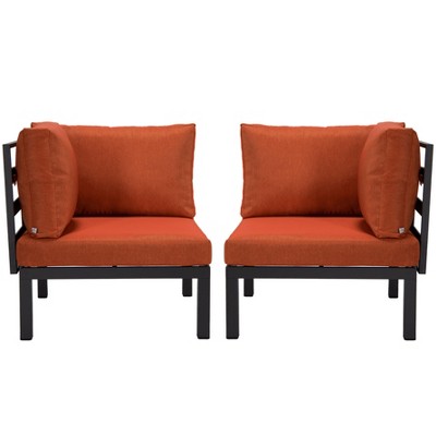 Transform your outdoor space with the LeisureMod Hamilton 2-Piece Corner Chair featuring two corner chairs that combine seamlessly or stand alone for customizable seating arrangements. Crafted with a durable powder-coated aluminum frame, it resists rust, corrosion, and UV exposure, ensuring long-lasting use in all-weather conditions. Plush cushions with high-density foam provide reliable comfort and support, while secure ties keep them in place. Quick-drying polyester covers are removable and machine washable for effortless maintenance. Protective plastic caps on the chair legs safeguard flooring and reduce noise during movement. Designed to withstand rain and sun, this weather-resistant set delivers year-round style and functionality. Simple assembly with included instructions and hardware ensures you’re ready to enjoy your patio, garden, or poolside in minutes. Enhance your outdoor living with a blend of durability, comfort, and elegance.