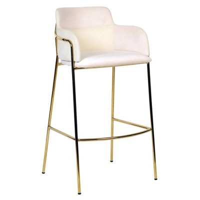 Product Name: LeisureMod 40" Bar Stool Upholstered in Velvet Pub Chair with Powder-Coated Stainless Steel Base with Armrest and Footrest Axis Series in Beige