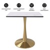 Product Name: LeisureMod Bristol 27" Square Dining Table with Marbled White MDF Top and Gold Steel Pedestal Base for Modern Kitchen and Dining Room