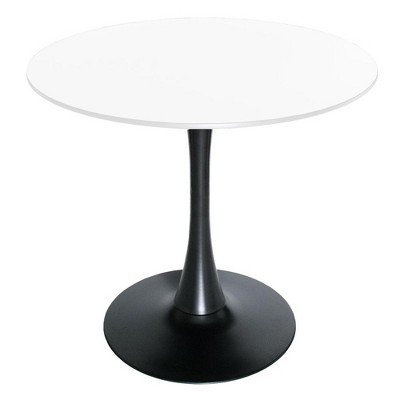 LeisureMod Bristol 31" Round Dining Table – Modern MDF Top Accent Café Table & Glossy Black Iron Pedestal Base for Kitchen and Small Spaces